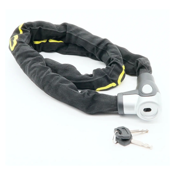 OJ Chain Lock è una catena con maglie in acciaio temprato, con un lucchetto blindato e doppia chiave. Ha una lunghezza di 150 cm che consente di mettere in maggiore sicurezza il mezzo a due ruote ad un palo o di chiuderla su sé stessa facendola passare attraverso la ruota posteriore.